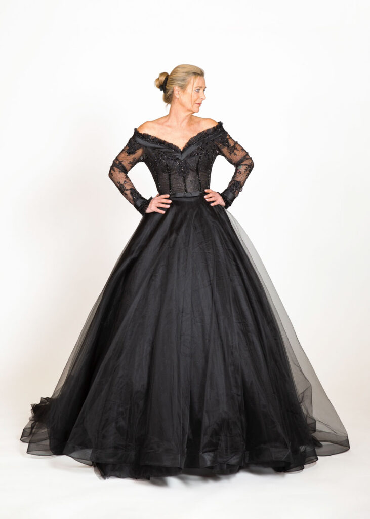 Wir verwenden ganz unterschiedliche Schwarztöne, kombinieren mit anderen Farben, wie zum Beispiel Gold und setzen durch den geschickten Einsatz von Spitze und anderen hochwertigen Materialien atemberaubende Akzente.