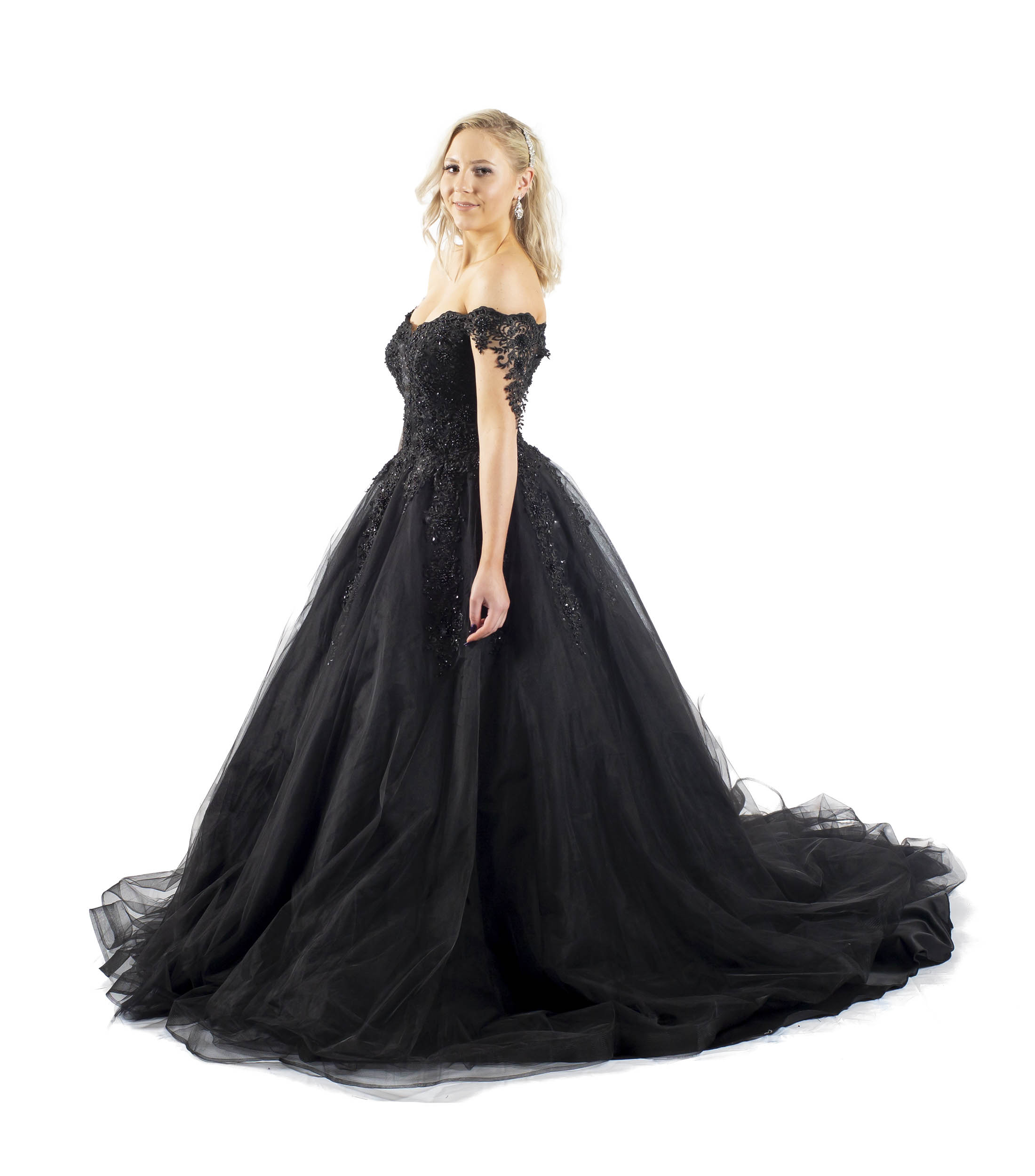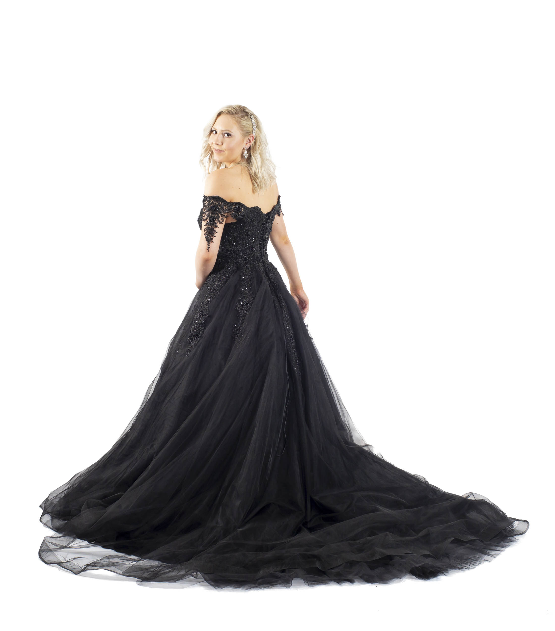 Es besitzt ein mit Spitze besticktes Oberteil mit einem Herzausschnitt. Die Carmen-Träger wirken verspielt und passen gut zu den Spitzen-Applikationen im Tüllrock. Im Rückenteil findet sich eine aufwendige Schnürung. Das Brautkleid „Shirin“ ist ein Kleid für Märchenprinzessinnen