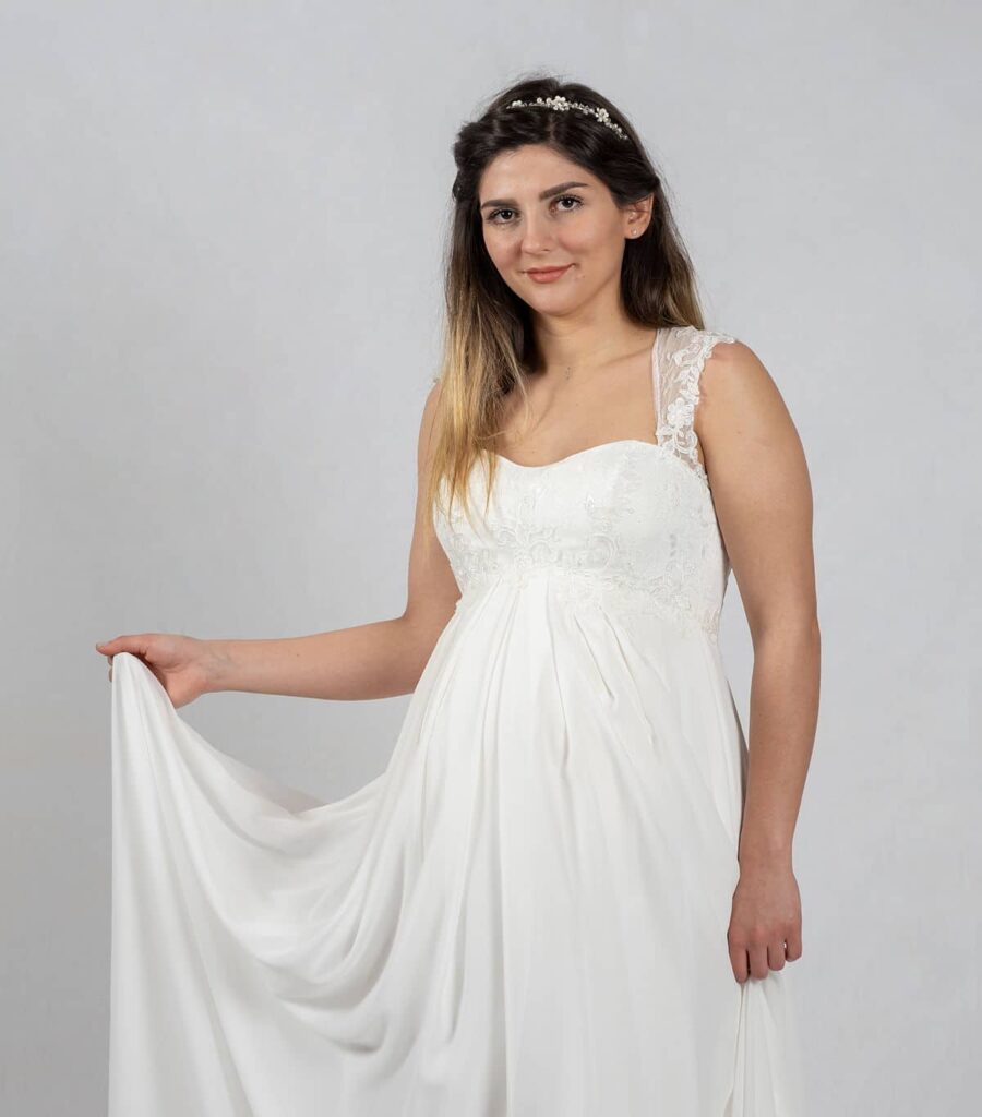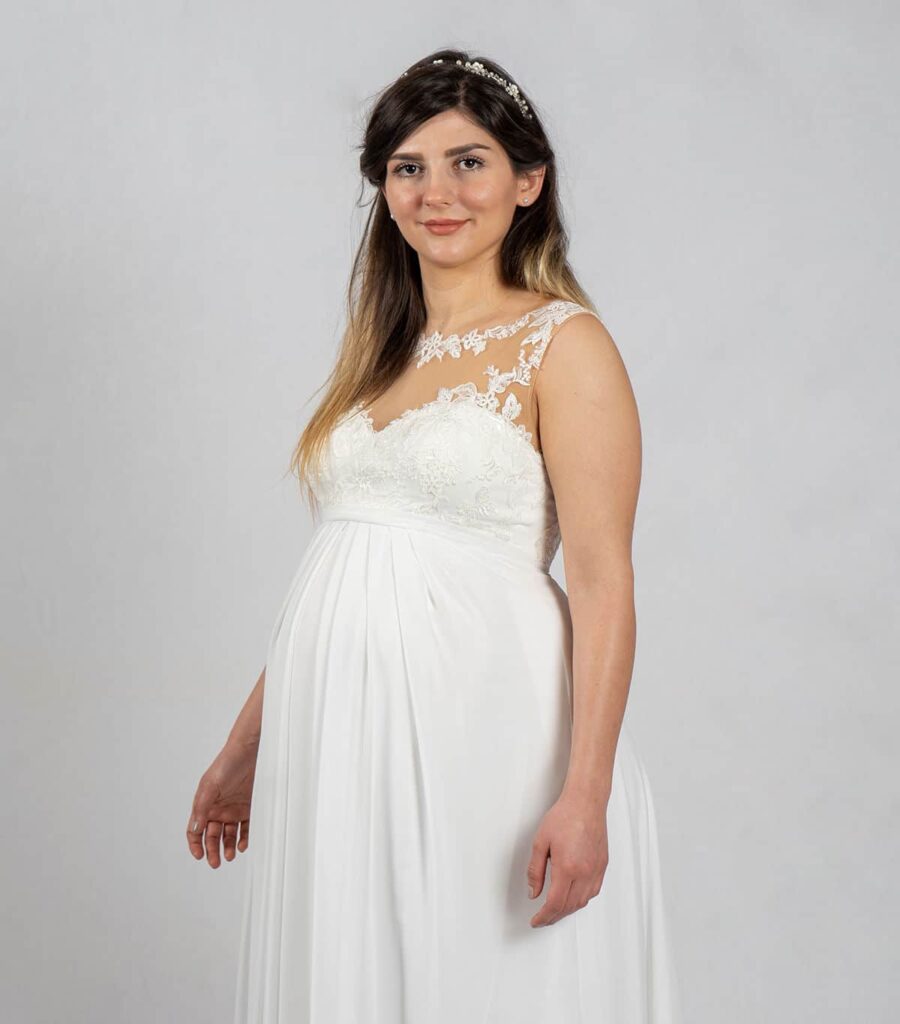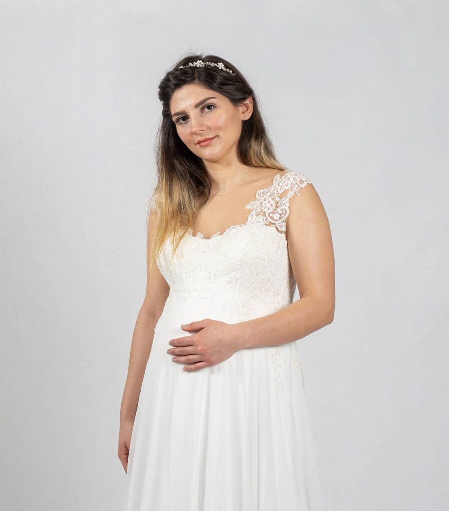 Deshalb haben wir eine sehr große Auswahl an Brautkleidern für schwangere Bräute bereit.